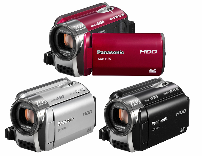 Panasonic推出全新iA數碼手提攝錄機 Panasonic全新推出多款配備「iA智能拍」功能的數碼手提攝錄機SDR-H80、SDR-S26及SDR-S15,用家在拍攝過程中毋須再大費周章調校設定,帶來無限方便。其中H80及S26更備有業界最強170倍光學變焦功能,同時配合Advanced O.I.S.進階光學防手震系統,將手震對拍攝畫面的影響減到最低,即使變焦幅度較大,影像依舊絢麗清晰,將遙遠景像完美拉近。H80擁有3種機身顏色以供選擇,盡展用家的個人品味。 硬碟及SD記憶咭手提攝錄機 (SDR-H80) SD記憶咭手提攝錄機 (SDR-S26 / SDR-S15) 功能說明