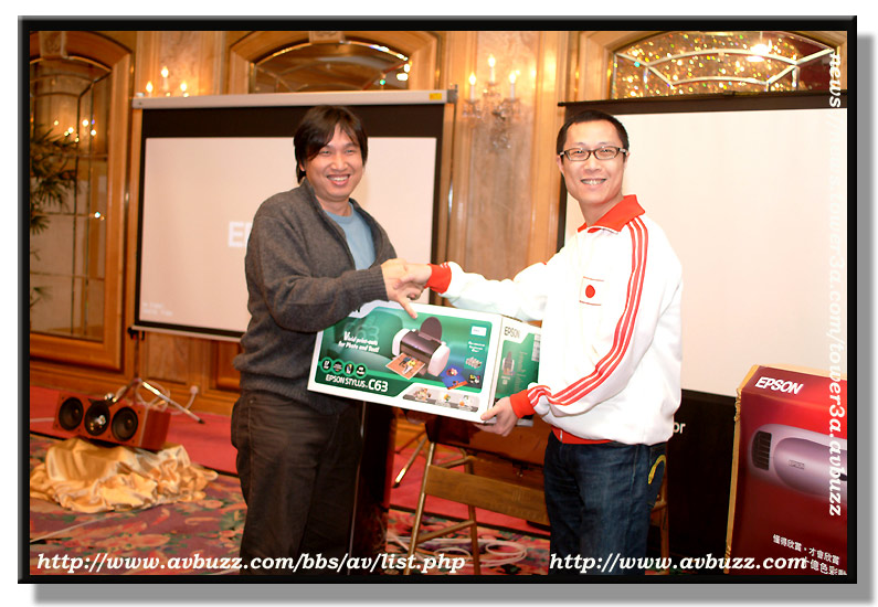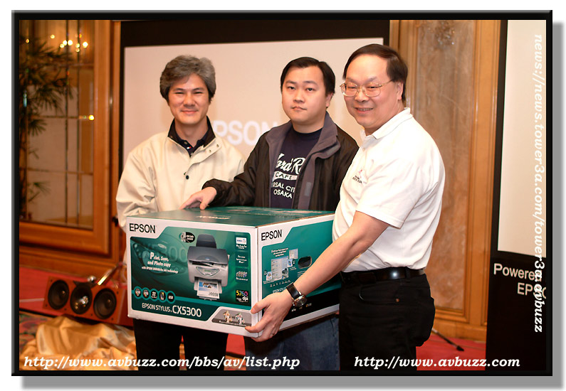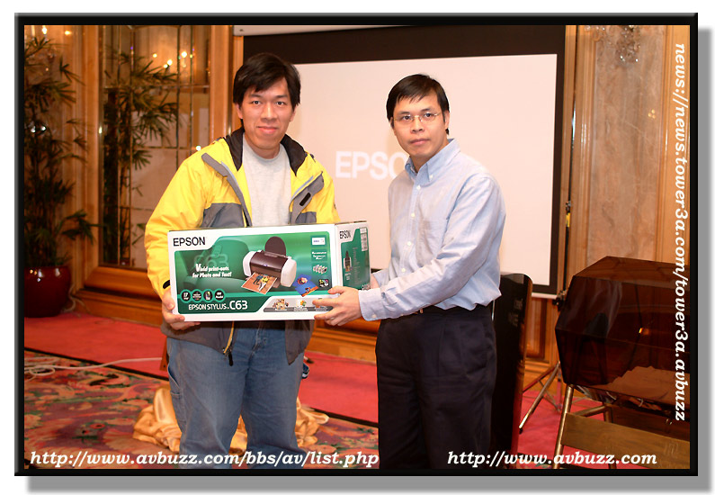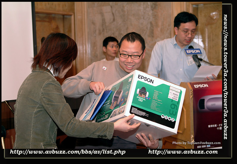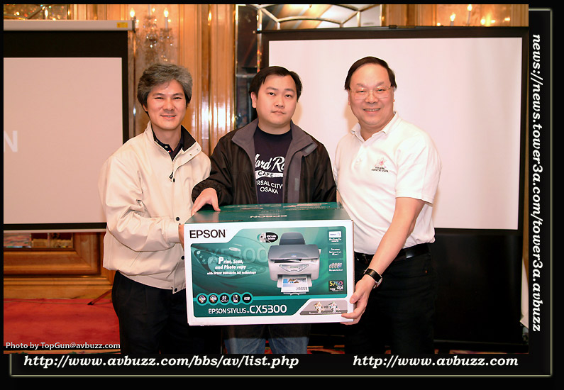 第三份獎品的幸運兒(左手面),由OS代表頒發EPSON C63打印機。