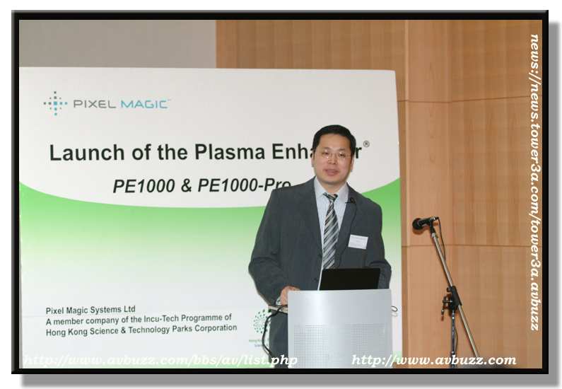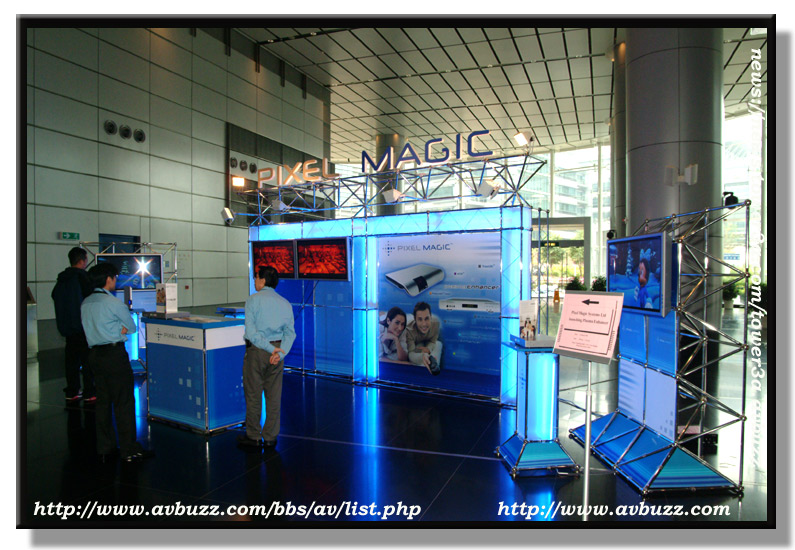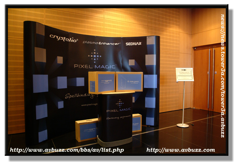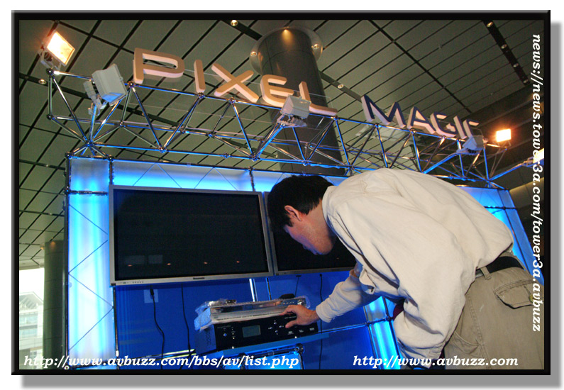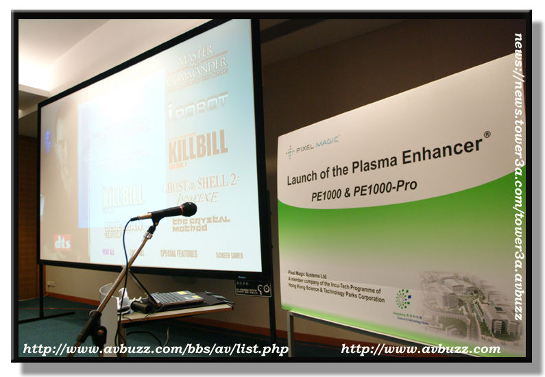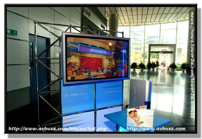 而在大堂所播放的 Plasma Enhancer 就比較容易見到分別,圖中所見的Sony Plasma ,前面是放上了PE1000,
