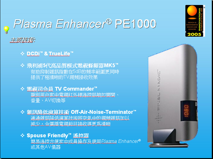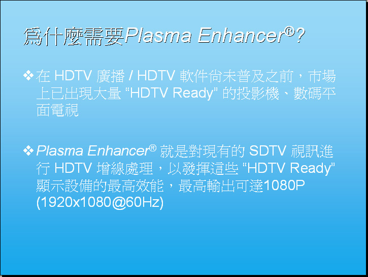 似乎如果有心購買 Plasma 的朋友,應該不要差那小小錢,接上 Plasma Enhancer 來優化 Plasma的畫質。