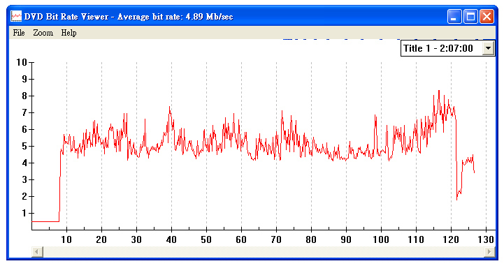 在數據方面,這隻一區的畫面Bitrate讀數是最低的,Bitrate平均處於 4.89 Mb/sec,即一半能力都沒有,