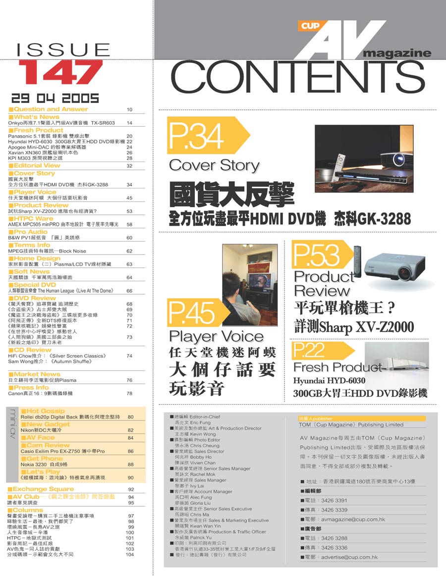 鳴謝 Av Magazine 提供資料相片,及受權刊出封面目錄。