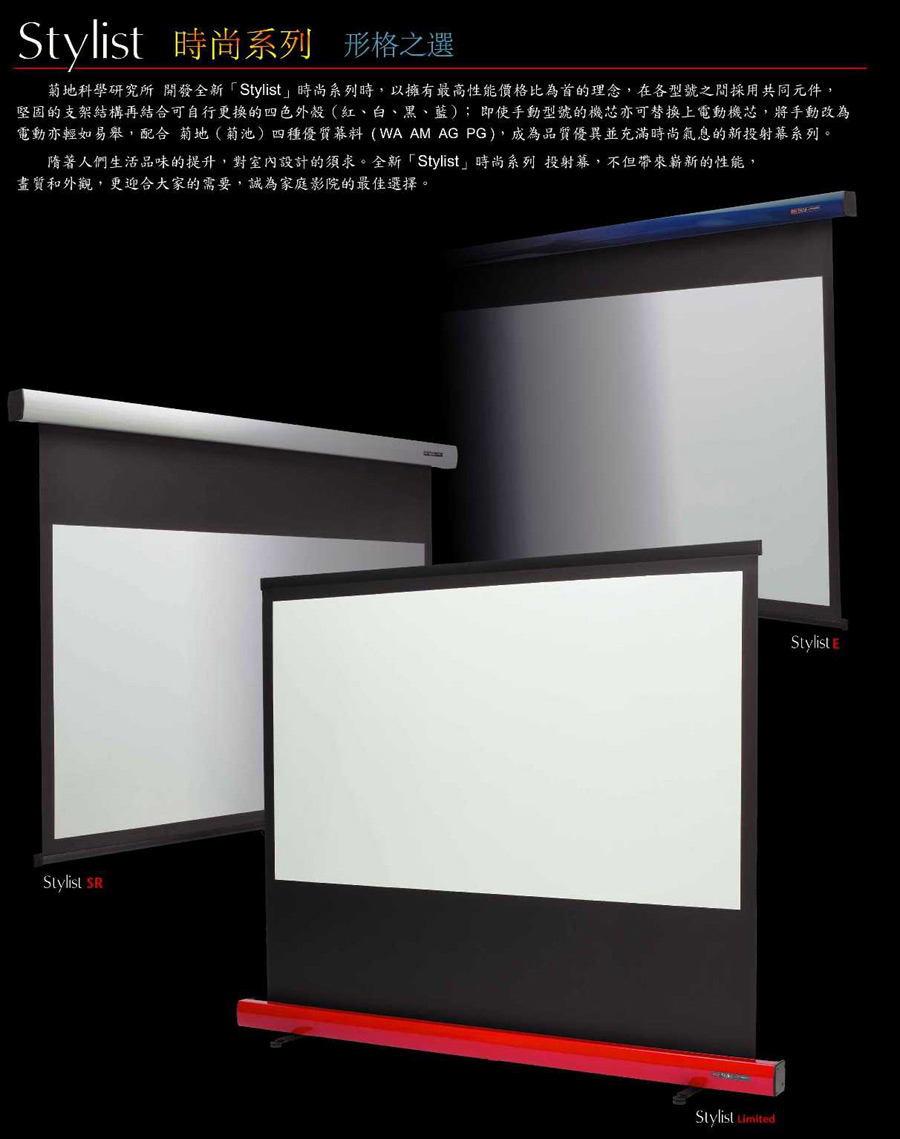 隋著人們生活品味的提升,對室內設計的須求。全新“Stylist”時尚系列投射幕,不但帶來嶄新的性能,
