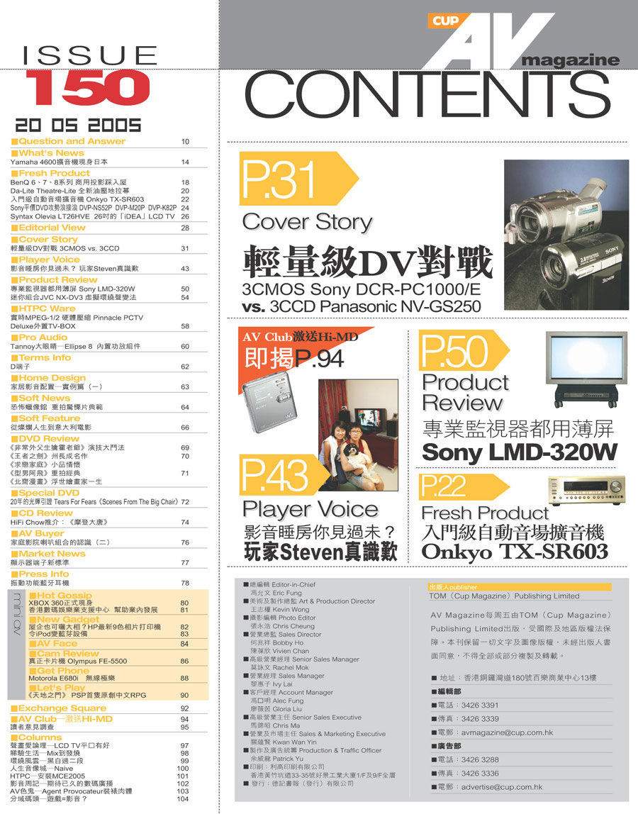 鳴謝 Av Magazine 提供資料相片,及受權刊出封面目錄。