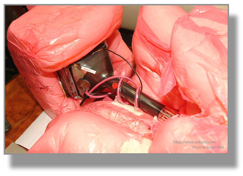 拆下舊的CRT,自然是換上新的CRT,把紙箱拆開後,可見到如圖的保護設備包著全新的一枝CRT。