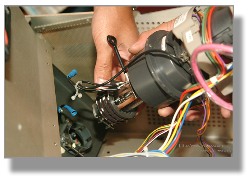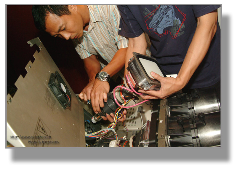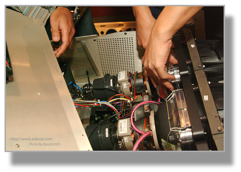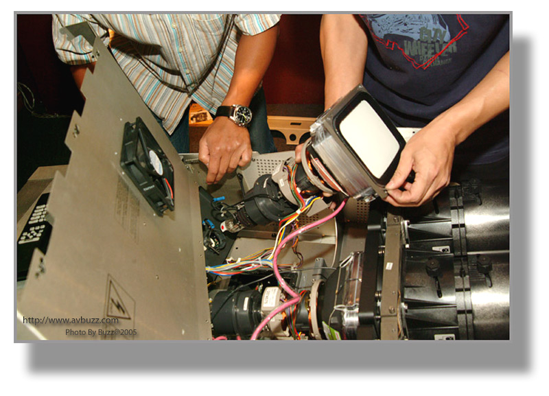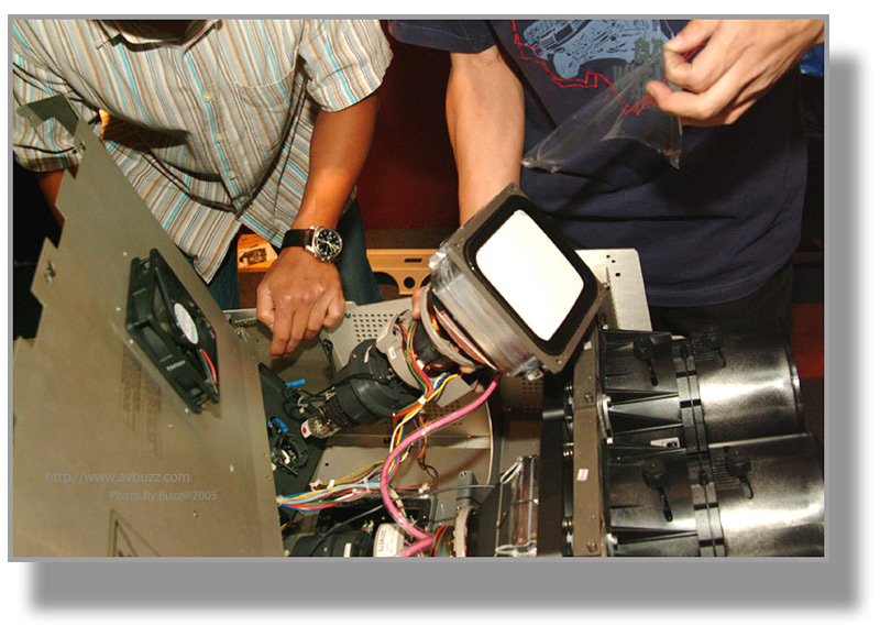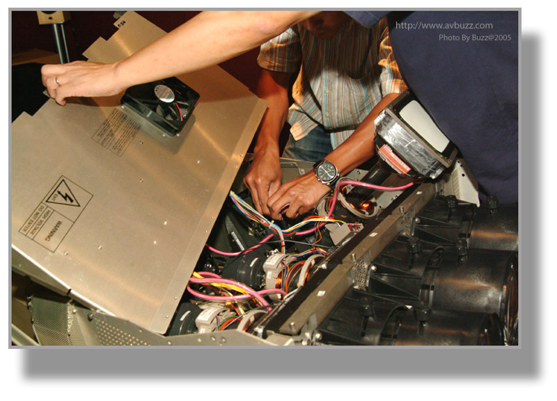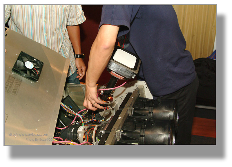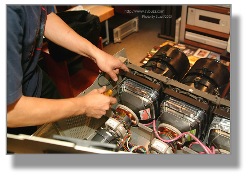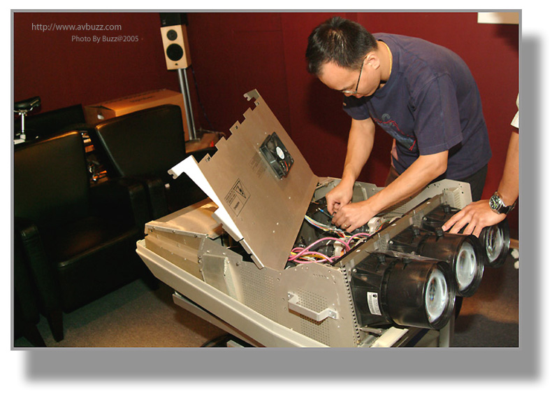於是三槍機就是他的目標,在某一個星期六,這部經換了三枝全新CRT的BARCO 1208,就會離開飛洋視聽的大本營,去到屋主的家。