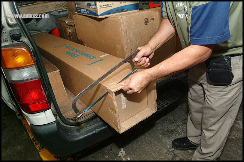 把Stewart紙箱的一頭一尾都切去多出的部份,於是就可夠長度放入車箱內,而又可把車門關上。
