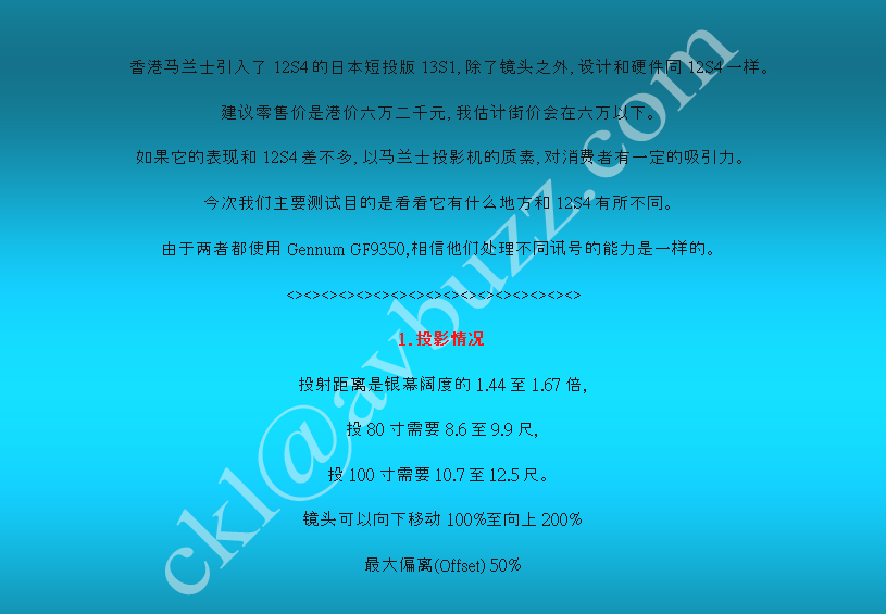 投影机报告书第八集 Marantz VP-13S1