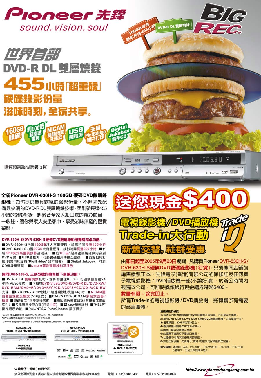 為配合此型號的推出, 本公司將舉行『電視錄影機/ DVD播放機Trade-in大行動 – DVR-630H-S/DVR-530H-S』