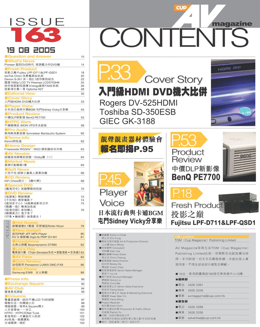 鳴謝 Av Magazine 提供資料相片,及受權刊出封面目錄。