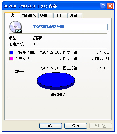 ©ñ¤J¹q¼v¤º®eªº¤@°¦DVDºÐ¨ì¹q¸£ DVD Rom¤º¡A³z¹L¹q¸£ªºÅª¨ú¡A¥i¨£¨ì³oºÐªº®e¶q¬O¤j¬ù 7.43GB¡A