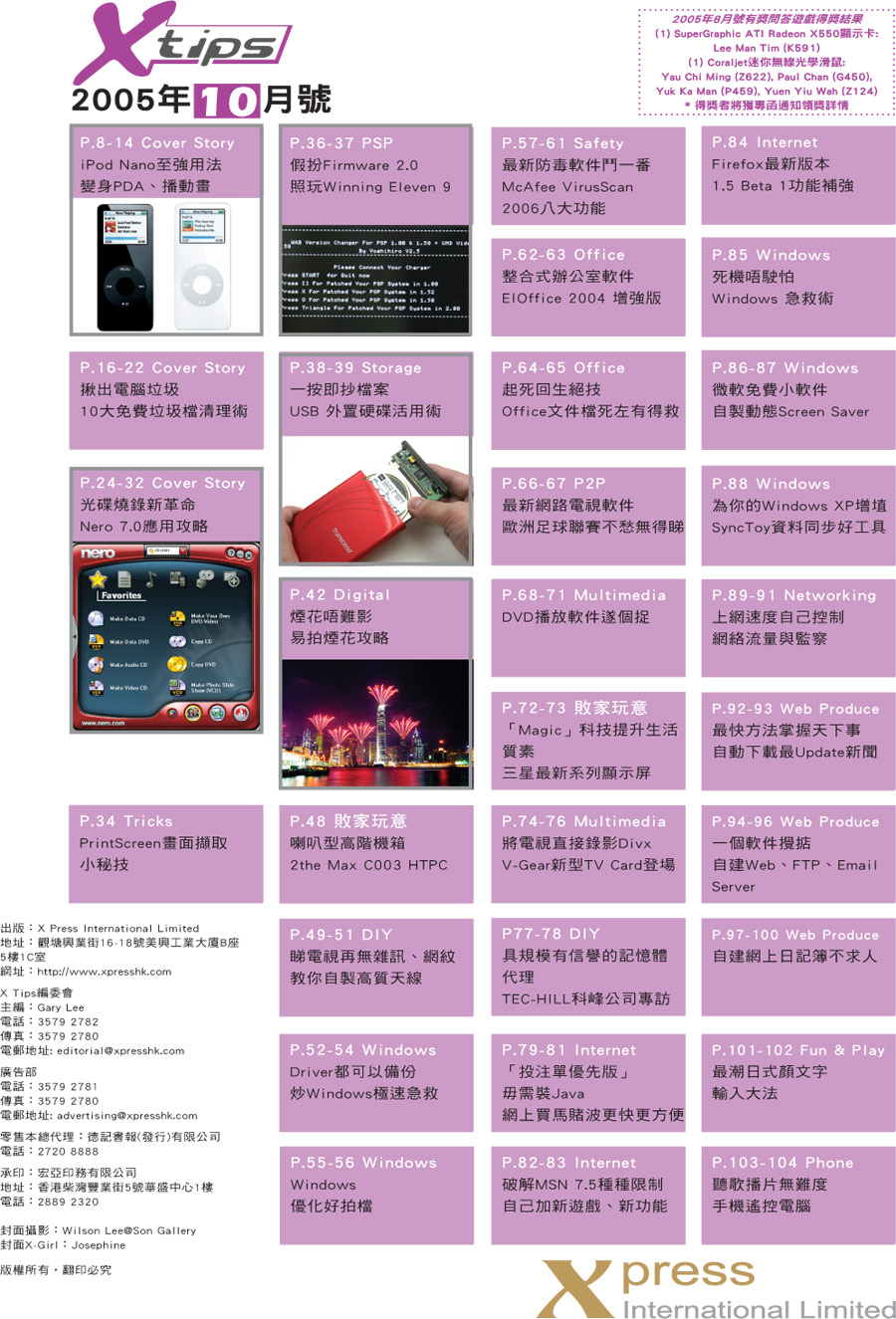 鳴謝Xtips提供資料相片,及受權刊出封面目錄。