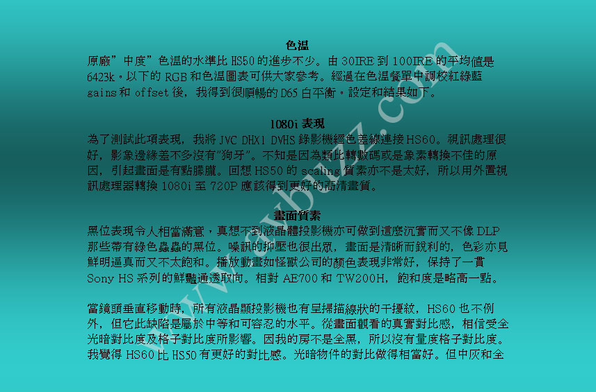 Sony HS60 報告書繁體版