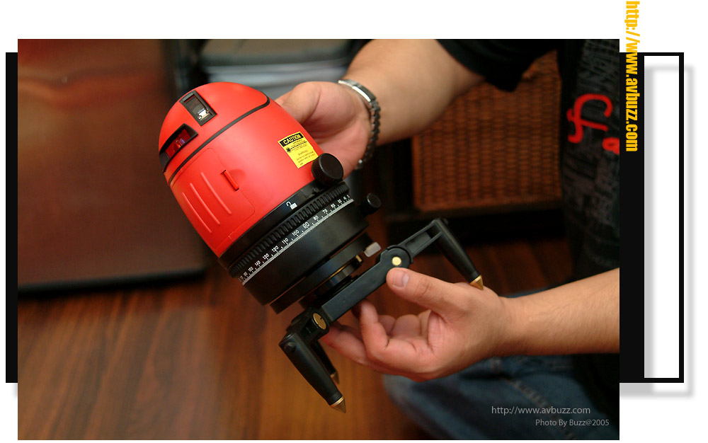 利用這個電子墨斗中間的十字線來找到中位,安裝了投影幕後,再利用她找出來的中位,來擺放中置喇叭。