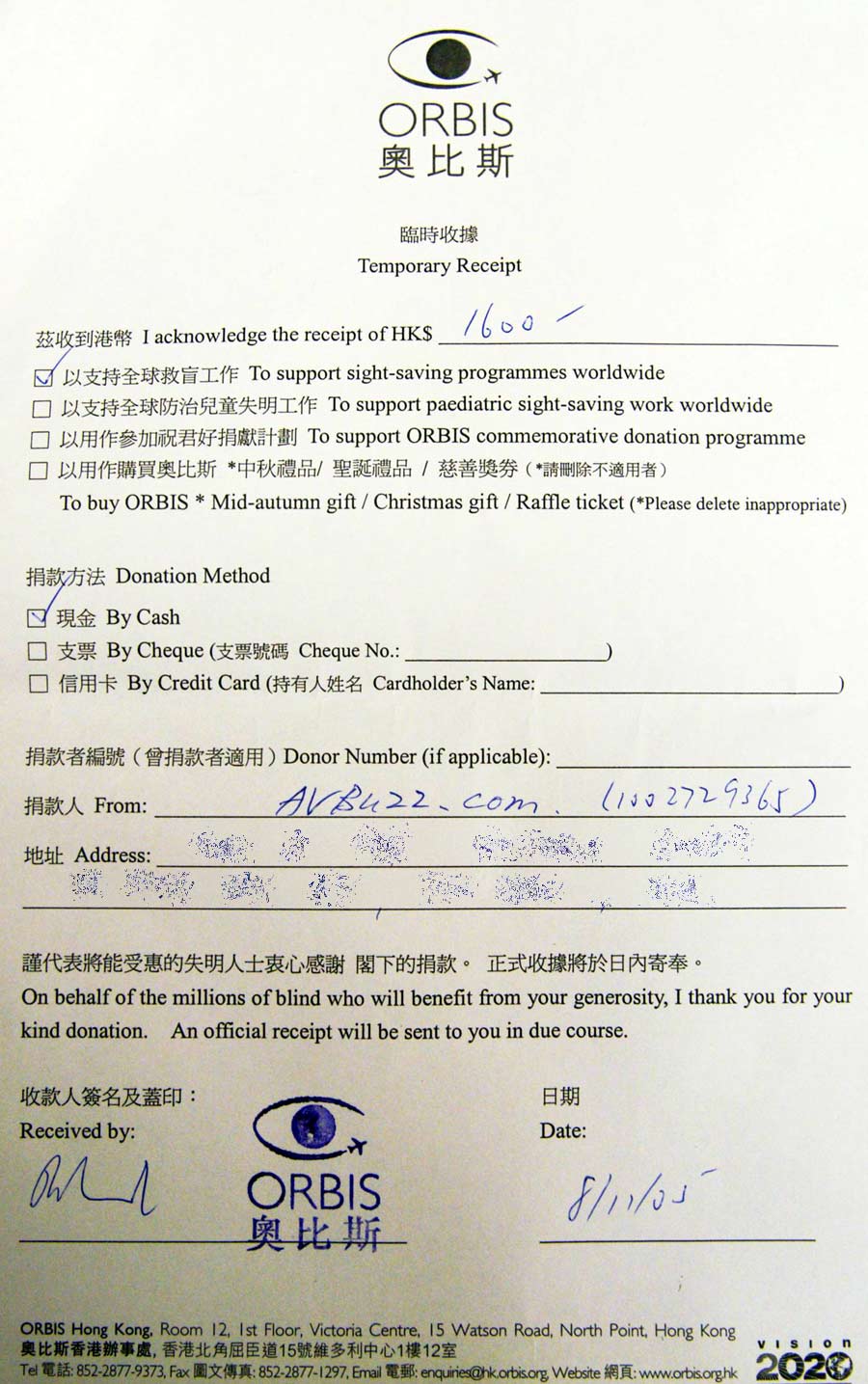 在此代表奧比斯多謝各出席會員的捐助,以下是昨日由奧比斯所發出的收據。
