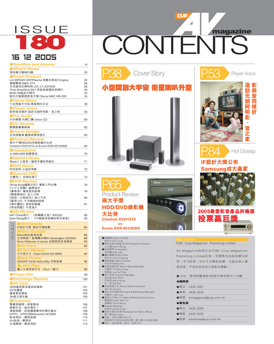 鳴謝 Av Magazine 提供資料相片,及受權刊出封面目錄。