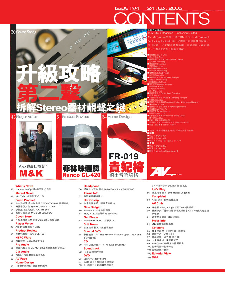 鳴謝 Av Magazine 提供資料相片,及受權刊出封面目錄。