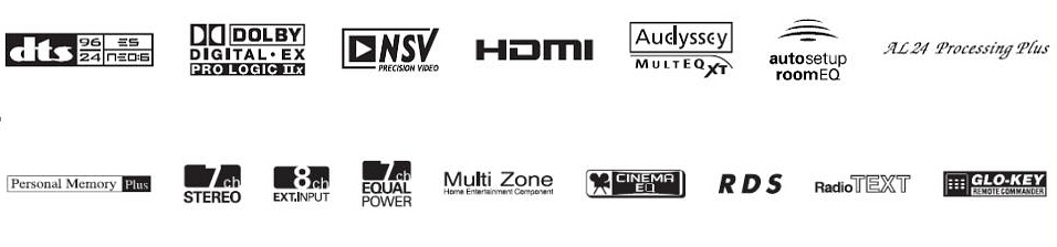 LFE 分頻點 : 40Hz , 60Hz , 80Hz ,90Hz , 100Hz , 110Hz , 120Hz , 150Hz , 200Hz , 250Hz 選擇供前置、中置、環繞 A 環繞B 和後環繞聲道使 Audio Delay 音頻延時功能 ( 0 ~ 200 ms ) 2 組前置喇叭輸出 純直通模式 Pure Direct Mode Night Mode 深夜聆聽模式 靜音音量調整 ( -- / -20dB/-40dB ) 各模擬輸入電平調整 各輸入名稱重新命名 新開發的遙控器兼備預存編碼 加大機面顯示屏,豐富顯示資料,菜單設置可在機面完成 56 個 AM / FM 電臺調頻預設記憶 分離式電源 ( IEC ) 日本製造 尺寸 : 434 (w) x 171 (H ) x 429 (D) mm 重量 :14 千克 |