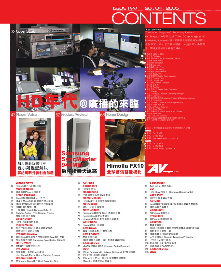 鳴謝 Av Magazine 提供資料相片,及受權刊出封面目錄。