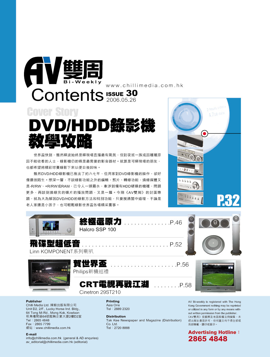 鳴謝AV雙周提供資料相片,及受權刊出封面目錄。