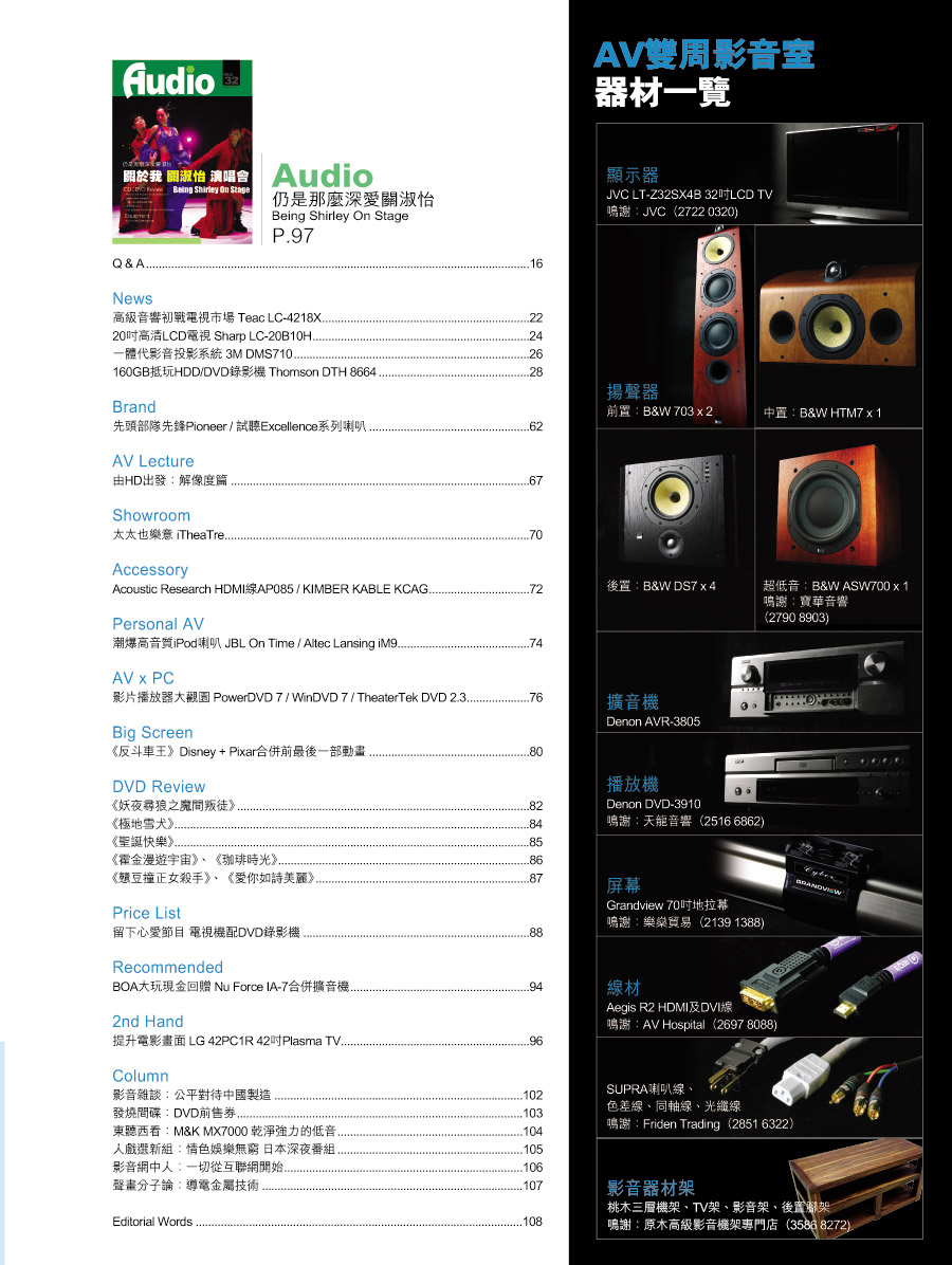 鳴謝AV雙周提供資料相片,及受權刊出封面目錄。