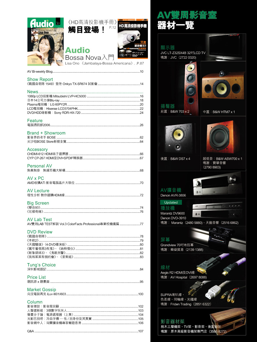 鳴謝AV雙周提供資料相片,及受權刊出封面目錄。