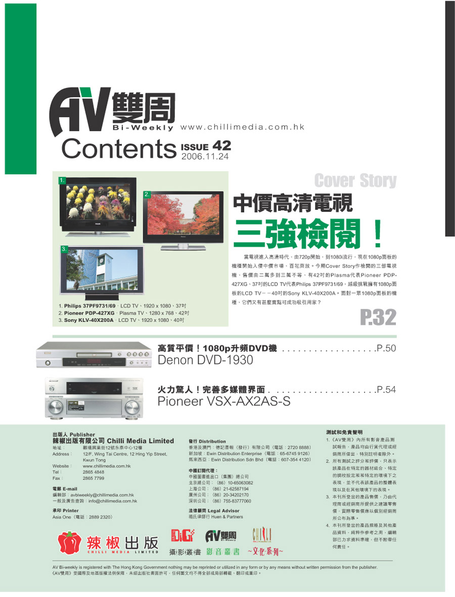 鳴謝AV雙周提供資料相片,及受權刊出封面目錄。