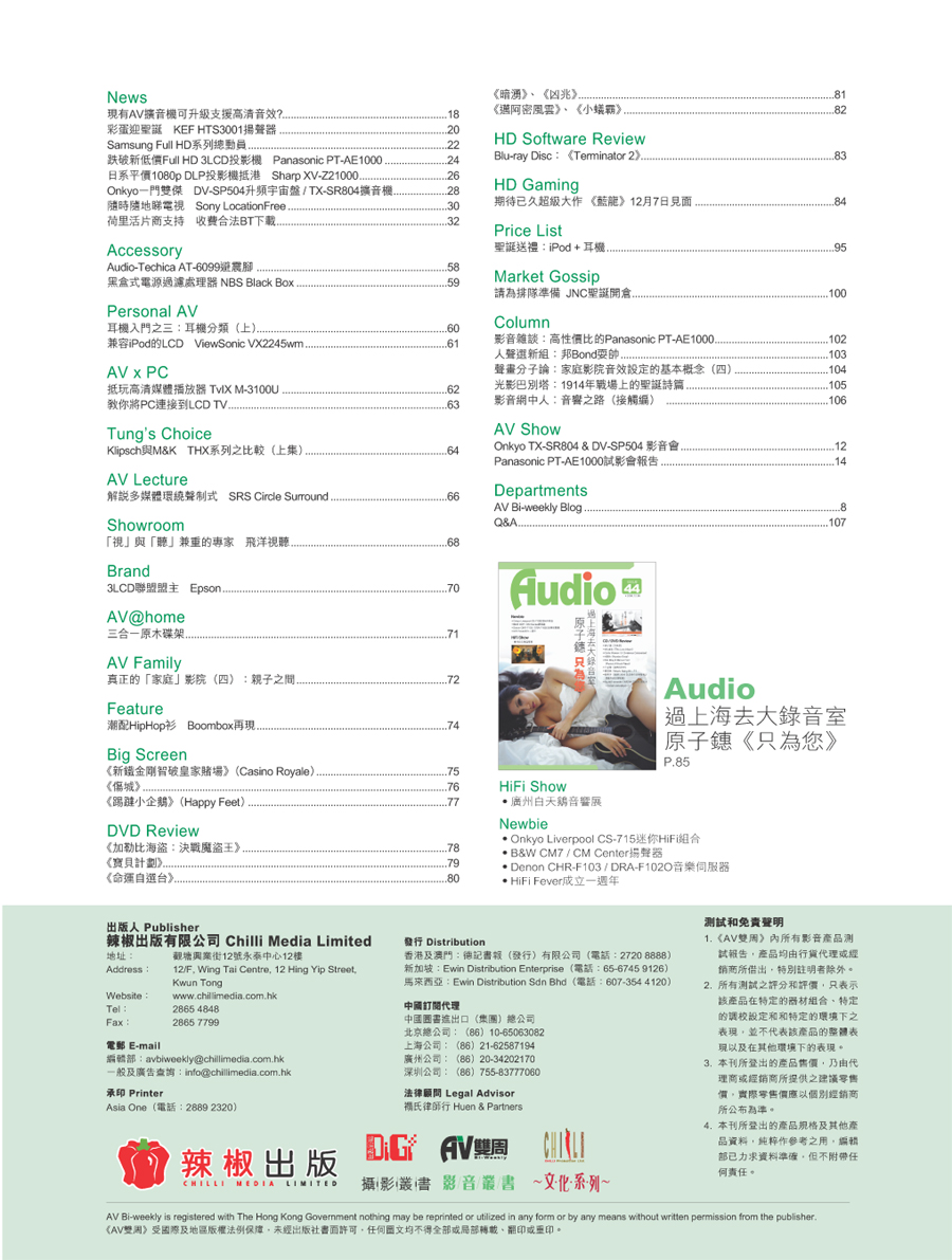 鳴謝AV雙周提供資料相片,及受權刊出封面目錄。