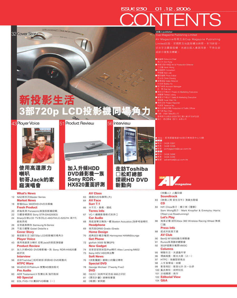 鳴謝 Av Magazine 提供資料相片,及受權刊出封面目錄。