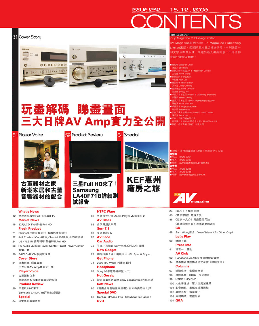鳴謝 Av Magazine 提供資料相片,及受權刊出封面目錄。