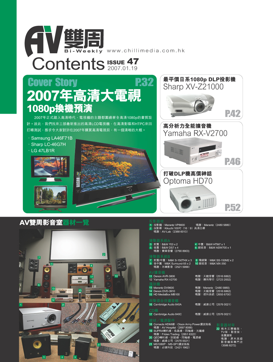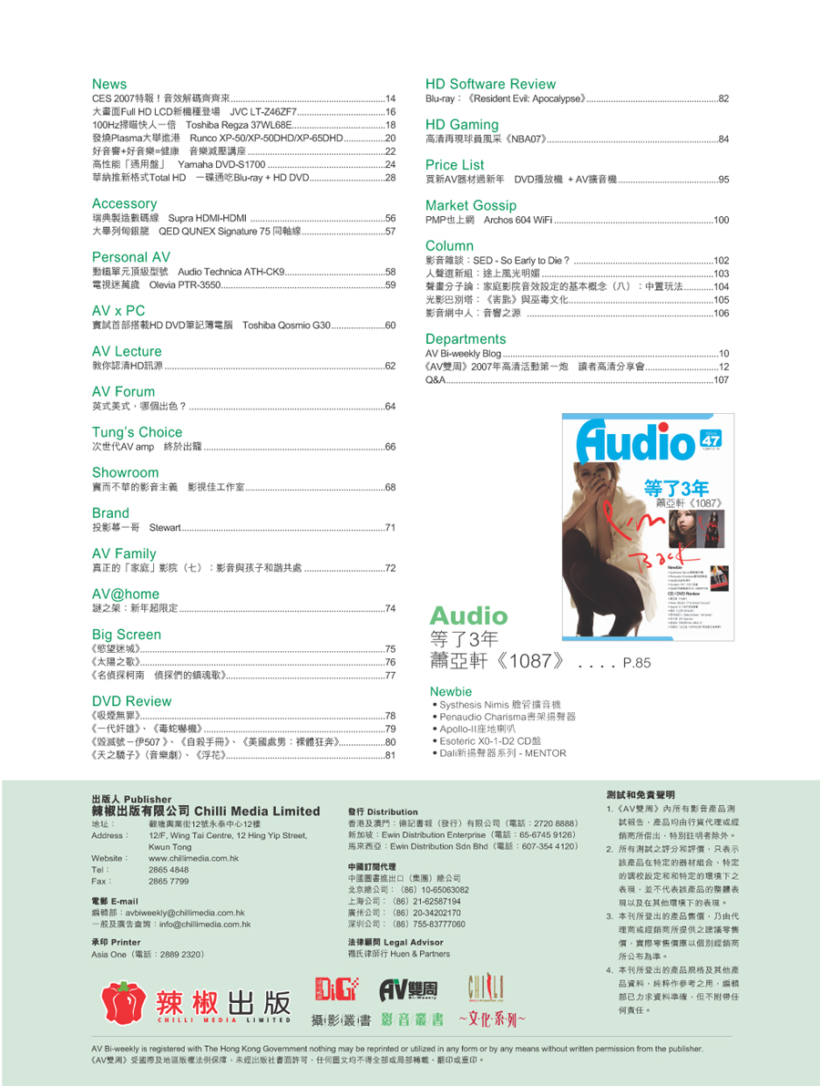 鳴謝AV雙周提供資料相片,及受權刊出封面目錄。
