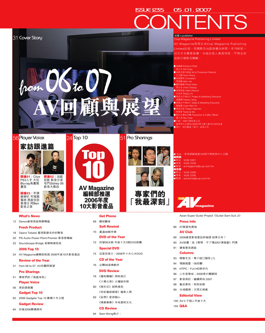 鳴謝 Av Magazine 提供資料相片,及受權刊出封面目錄。