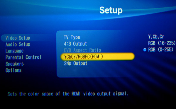由於自己所用的Sony G70三槍投影機,最佳解像度為1080i,所以把Sony BDP-S1,另外透過DVI轉VGA,設定為1080i。