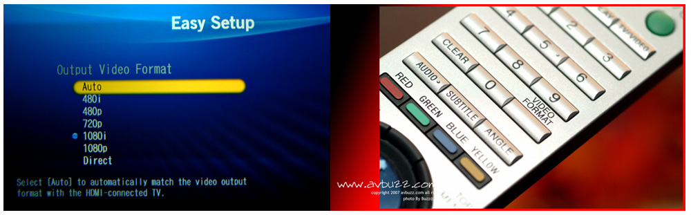 另一個方式就比較快一點,就是看右圖,直接按搖控上面的 Video Format,在畫面上一下一下跳到合適的解像度,非常好用的一個設計。