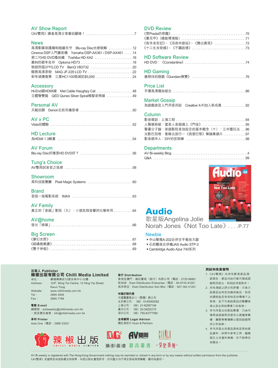 鳴謝AV雙周提供資料相片,及受權刊出封面目錄。