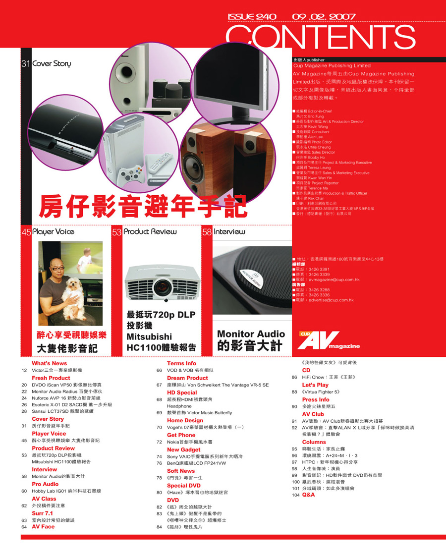 鳴謝 Av Magazine 提供資料相片,及受權刊出封面目錄。