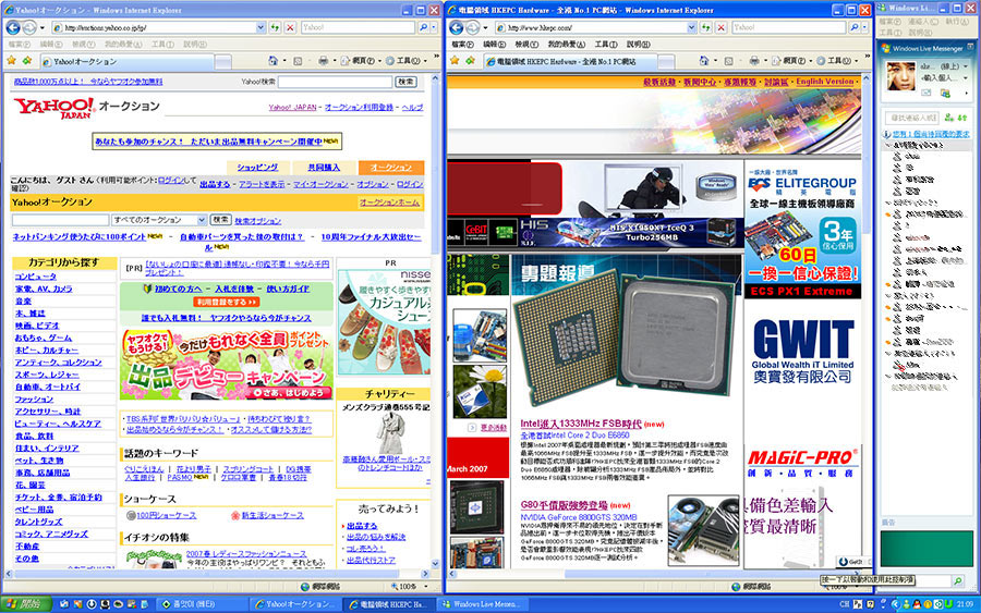 16:10的LCD Mon,可同時開兩個瀏覽器之後,還依然有位可放上MSN呢。