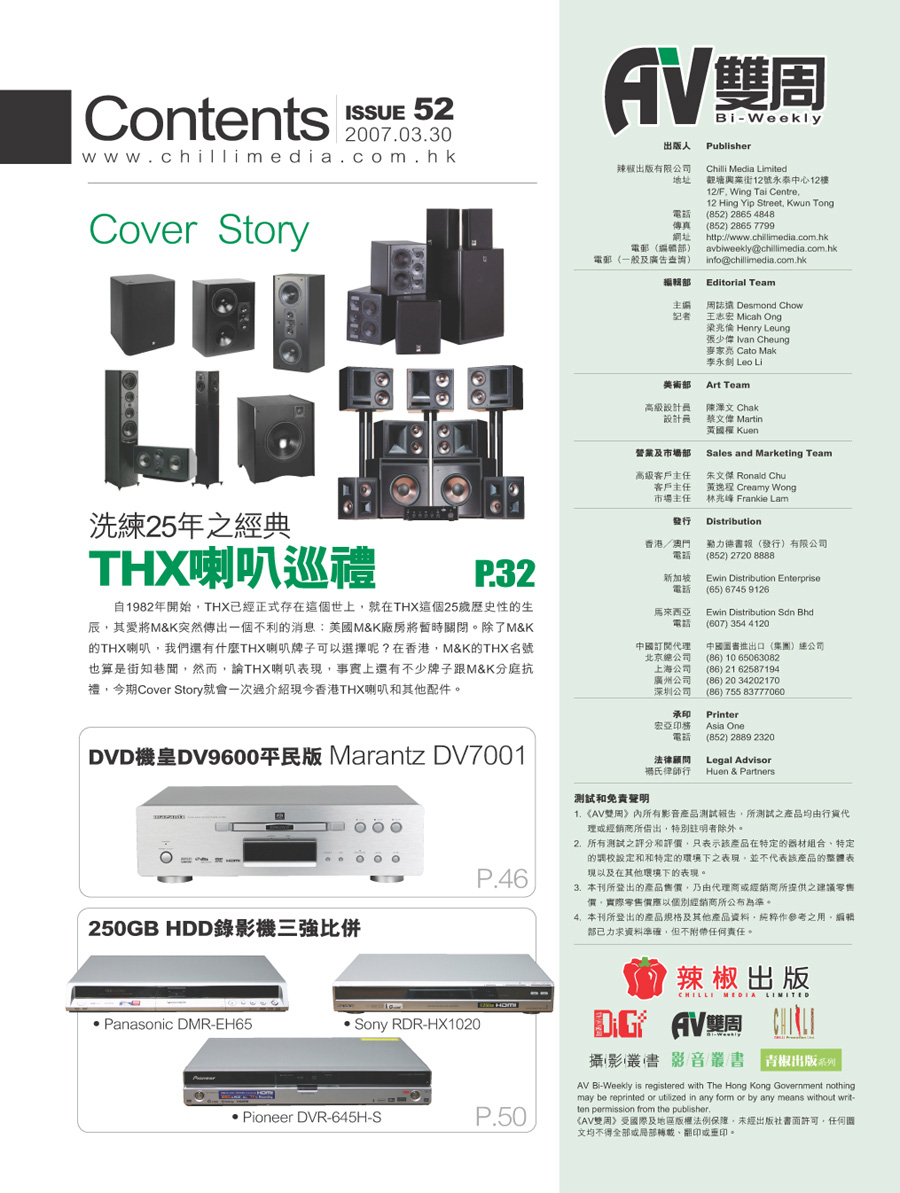 鳴謝AV雙周提供資料相片,及受權刊出封面目錄。