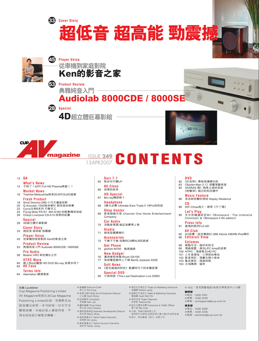 鳴謝 Av Magazine 提供資料相片,及受權刊出封面目錄。