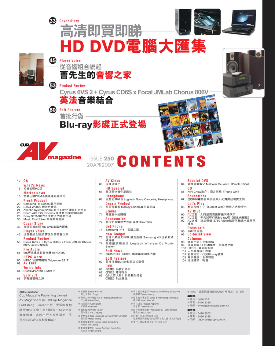 鳴謝 Av Magazine 提供資料相片,及受權刊出封面目錄。