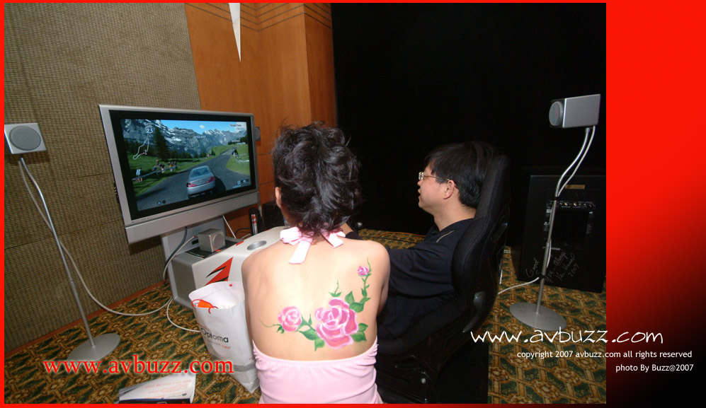 Logitech G25 賽車方向盤和PS3度身打做的賽車座椅,在場提供免費試用,給大家感受過中樂趣。