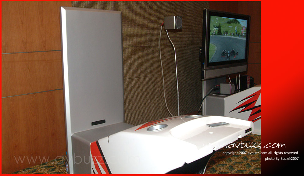米樂數碼影音在這兩張示範賽車座椅上面,配上方向盤和 37" 薄屏電視外,配合Sony PS3玩HD-GT。
