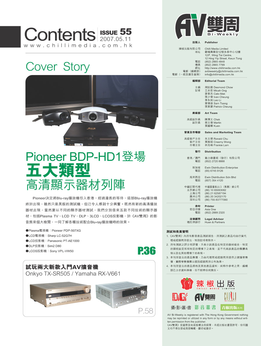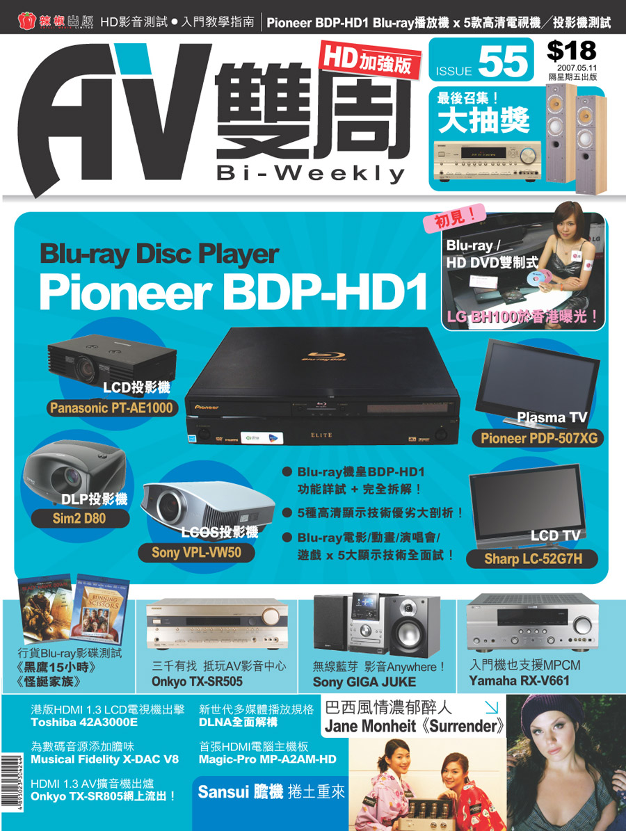 Pioneer決定將Blu-ray播放機引入香港,既然有新的高清播放器材出現,當然要以不同的顯示器材測試,我們分別借來五款不同技術的顯示器材,包括Plasma TV、LCD TV、DLP、3LCD、LCOS投影機,於《AV雙