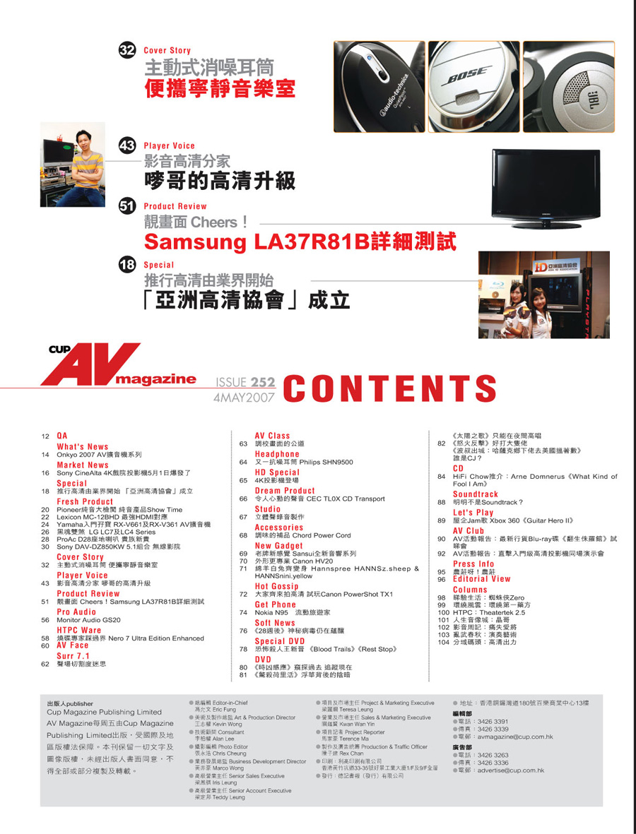 鳴謝 Av Magazine 提供資料相片,及受權刊出封面目錄。
