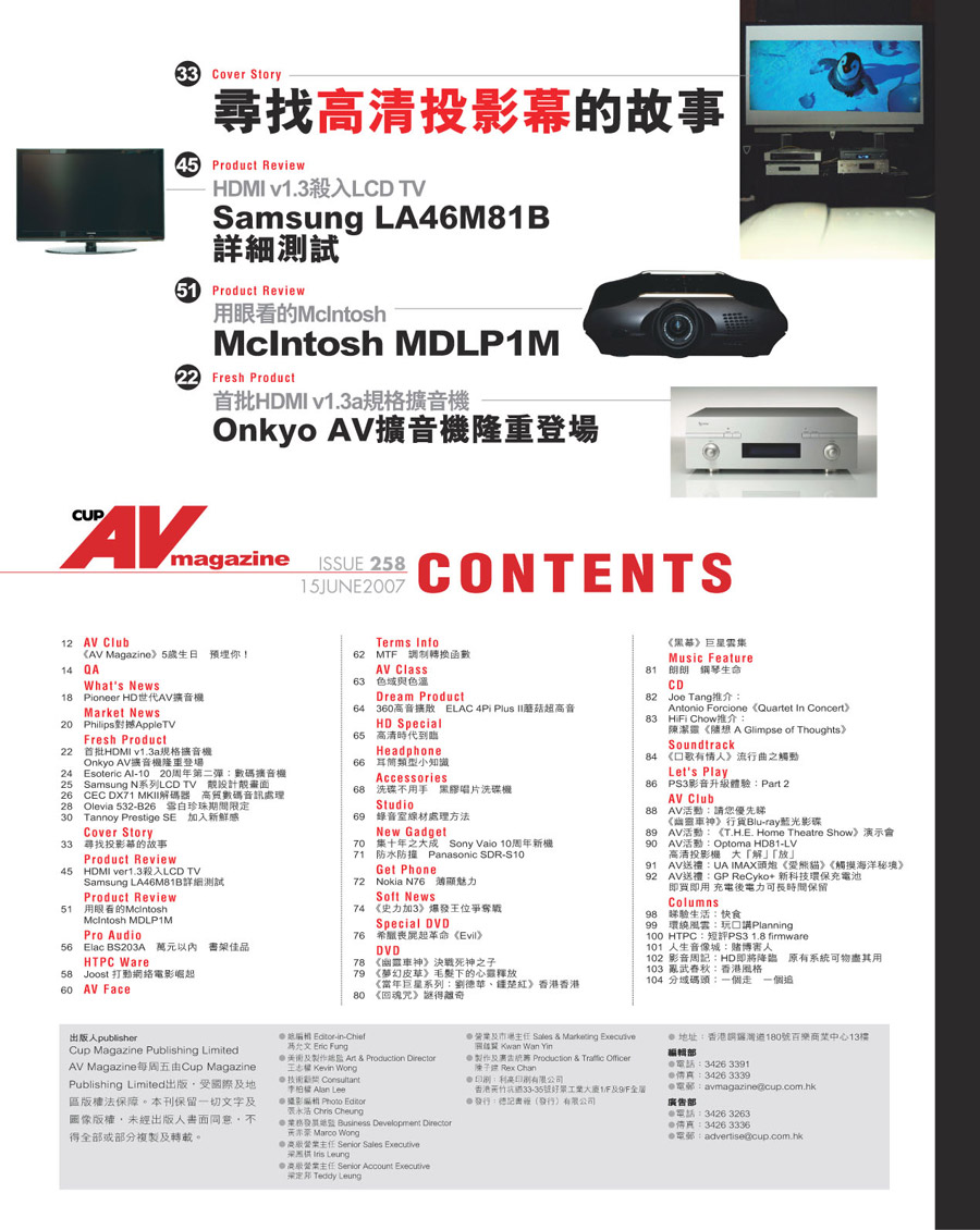 鳴謝 Av Magazine 提供資料相片,及受權刊出封面目錄。