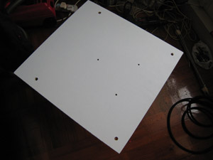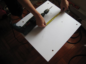 當木板完成鑽孔的工序後,就量一量這一些孔,看看是否真的對正投影機身上的羅絲位,