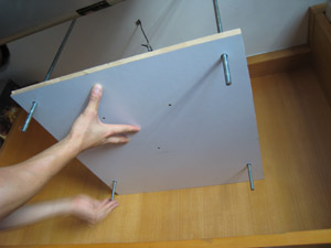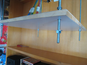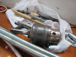 然後把早前鑽好孔的木板,套上四枝絲杆,並以羅絲和絲母來固定,