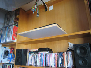 由於時間緊迫的關係,A-Keung暫用普通木板,作為倒放新投影機的支架,日後有空再用亞加力膠板取代。