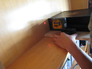 當有了數據後,他就開始用雷射水平儀,去量出所需鑽孔的位置,由於角度的關係,