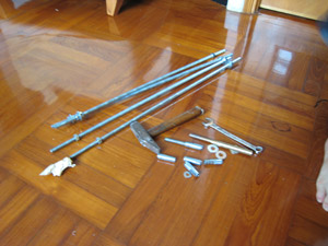 四枝絲杆連其他羅絲為港幣 $50 ,連同剛剛提到過的$30木板,這個掛架材料費為 $80 港元。